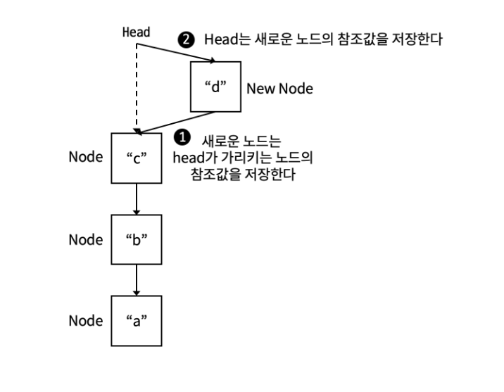 - head에는 새로운 노드의 주소값을 저장한다.