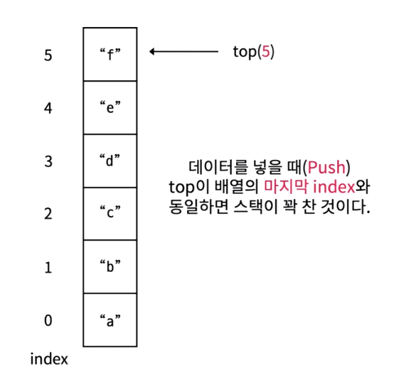 더 이상 배열에 저장할 공간이 없는 상태에서 push연산을 하는 경우 마찬가지로 별도로