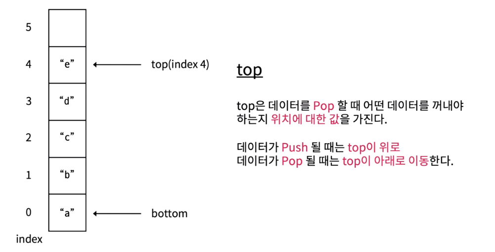 top 변수는 배열의 가장 마지막으로 저장된 요소의 index를 저장한다.