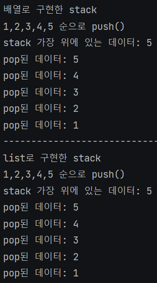 System.out.println("list로 구현한 stack");