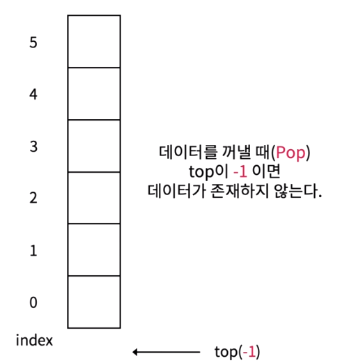 처음에 아무런 값도 저장하지 않는 스택에서 top은 -1을 저장한다.