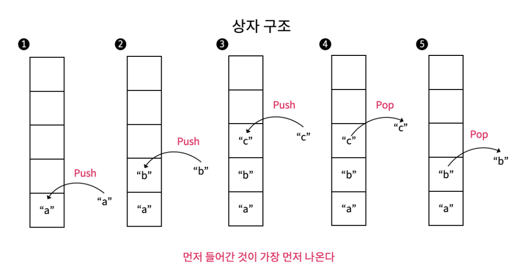 pop은 가장 늦게 들어온 요소를 삭제하는 연산이고, push는 요소를 맨 앞에 삽입하는 연산이다.