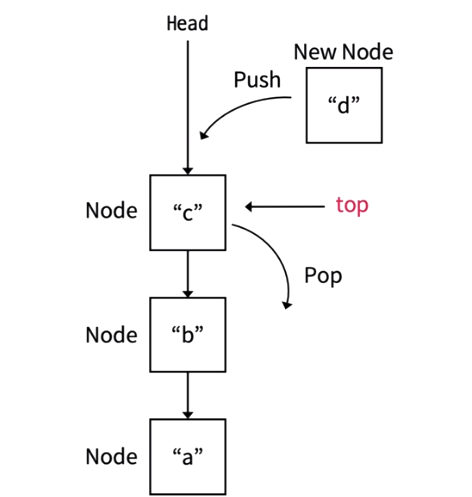 단지 '가장 앞 노드를 삽입하는 연산'과 '가장 앞 노드를 삭제하는 연산'만이 구현된 단일 연결리스트라고 봐도 무방하다.
