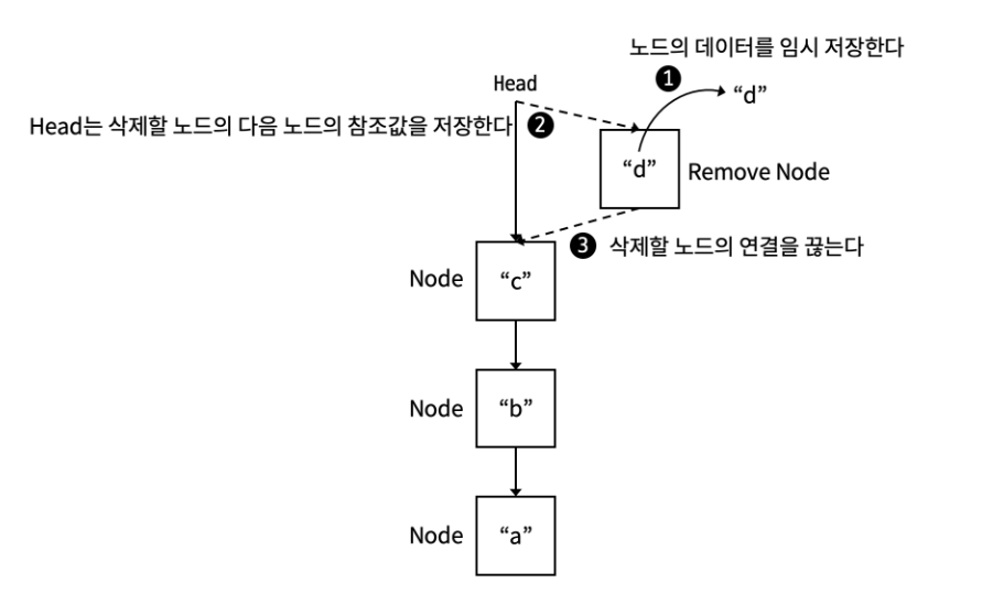 - head는 삭제할 노드의 next변수 값인 다음 노드 주소값을 저장한다.