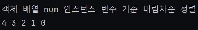 System.out.println("객체 배열 num 인스턴스 변수 기준 내림차순 정렬");